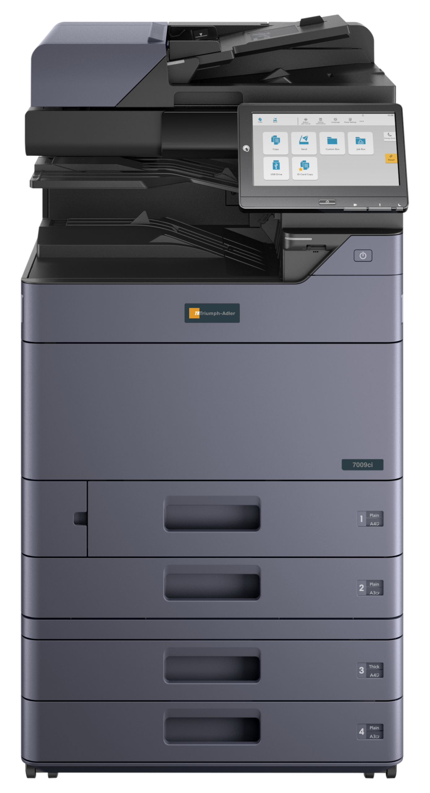 Het A3 multifunctionele systeem 7009ci is uw ideale partner voor slim, efficiënt en toekomstgericht kantoorwerk. Ontdek hoe naadloze integratie met cloud-applicaties, uitstekende printkwaliteit en intuïtieve bediening uw workflow kunnen verbeteren. De 7009ci biedt een afdruk- en kopieersnelheid van 70 A4-pagina’s per minuut, in kleur of zwart-wit. Dankzij zijn flexibiliteit, hoge afdruksnelheid en het vermogen om grote afdruktaken efficiënt te verwerken, verhoogt dit systeem de productiviteit in elke werkomgeving.